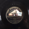 The RCM acoustic recordings followed exactly the same side-breaks as the original discs. Nikisch’s version of the first movement is taken at an unusually slow tempo, and omits the repeat of the exposition. Had the repeat been taken at this tempo, the first part of the Allegro would not have fitted on the record side. The first side of his Andante is also unusually long and at five minutes it barely fits on a side of a twelve-inch record at 78rpm. The centre label of this side is half an inch smaller in diameter than is standard and the music stops right at the end groove. In conductor Robin O’Neill’s interpretation of the Allegro, the exposition is repeated, except in a shorter version of the movement, which was recorded for electroplating purposes, to enable the moulding of a ten-inch resin record playable on a gramophone.[40]