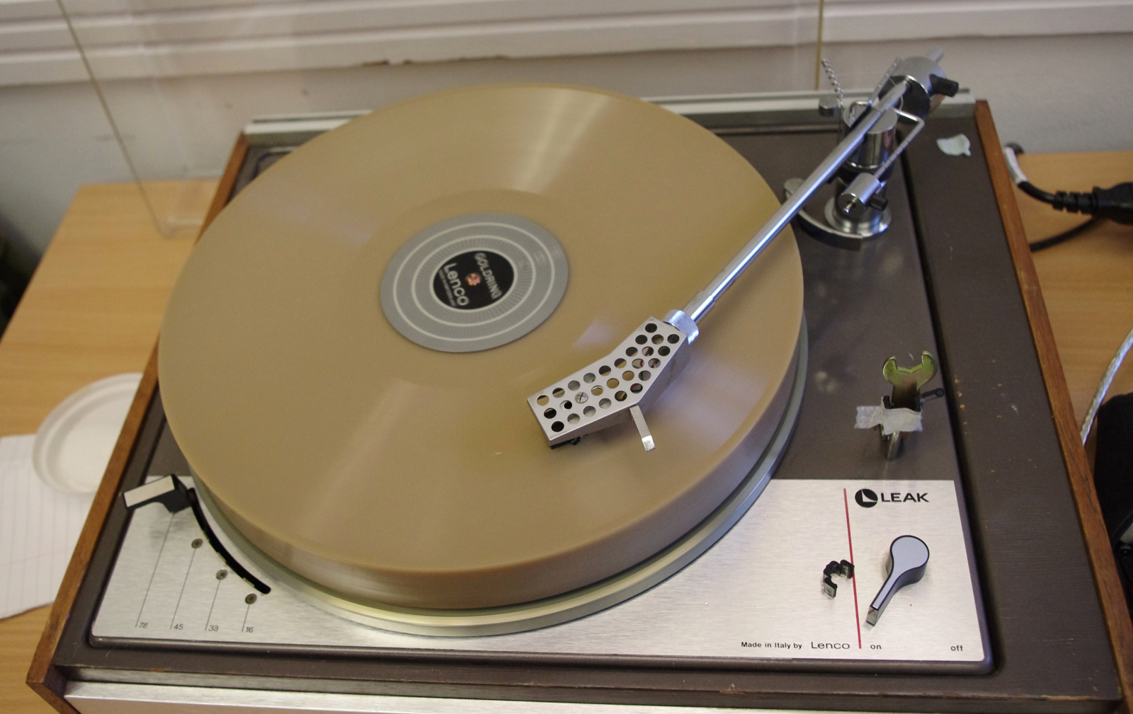 The wax behaved consistently and it was possible to warm the blanks and shave them on site during the sessions. Fully warming the blanks took several hours. The warming cabinet had a capacity for six blanks so the number that could be made ready at any time was limited. Maintaining the surface temperature could have been achieved by adding an overhead heat lamp to the lathe but this was not available so it was essential that recording commenced as a soon as the blank was on the turntable.