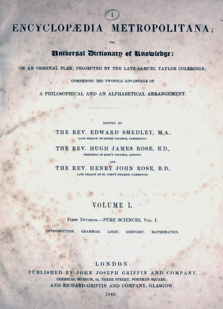 https://dx.doi.org/10.15180/Robert Bud’s longstanding historical investigation of the concept of applied science in various national contexts leads me to venture some reflections about the French case. Bud demonstrated that the notion of applied science emerged in English language in the Encyclopedia Metropolitana (see Figure 1), edited by Samuel Taylor Coleridge in 1817, and had been embodied in the creation of a number of colleges in Britain throughout the nineteenth century. It became socially and politically important in 1870s Britain (Bud and Roberts, 1984; Bud, 2012). It struck me that the phrase ‘applied science’ never really gained such traction in France. Hence my question: Was it in competition with cognate and more established concepts?