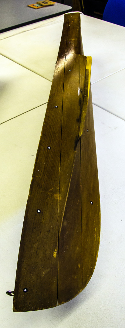 The line ran from each weight to a pulley at the top of two towers at either end of the tank. Addition of mass to either of the weights controlled the speed of the pull. The towers, pulleys and pits are still extant, but the line is not. It seems that the model may have been attached to a bar slung on the line.
