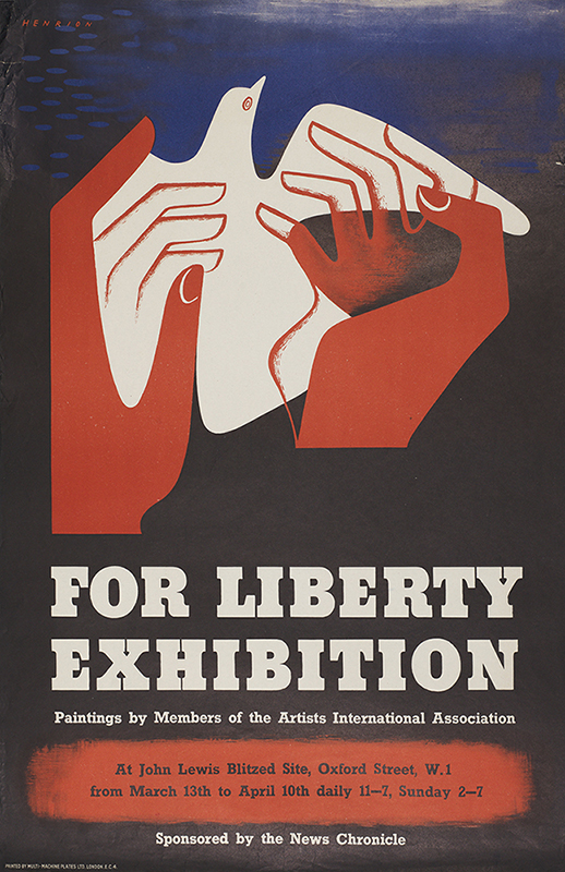 While left wing affiliations were highly visible in the 1930s, how conscious or deeply felt these values were is open for debate. While Atkinson tends to celebrate the ‘progressiveness’ of the designers, their politics don’t always seem particularly substantiative. Understandably their ‘politics’ often demonstrably mattered less than their status as professional designers. McKnight Kauffer worked for the Peace Pledge Union, but he also designed a book for Oswald Mosley. During the war, the AIA was commissioned by the British government to produce an exhibition For liberty: paintings on war, peace and freedom, to promote a speech by President Roosevelt.
