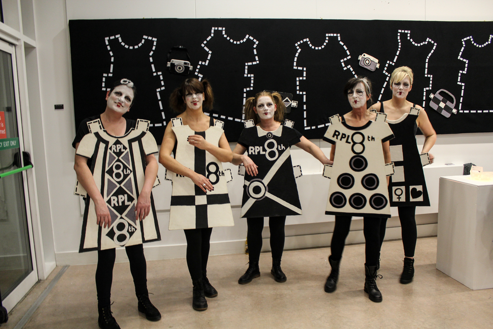 https://dx.doi.org/10.15180/201401/008The art community was heavily involved with the Yes Campaign, and, like the Artist’s Campaign to Repeal the 8th, the Cut-Out Dolls, a performance art group in Limerick, were a visually impactful part of protest marches. The NMI acquired their striking black and white costumes, made in the form of the cut-out paper clothing popular in comic books aimed at young girls in the 1980s, which dressed the bodies of the performers with the numeral ‘8’ while their performances illustrated the negative impact the 8th Amendment had on the lives of Irish women.