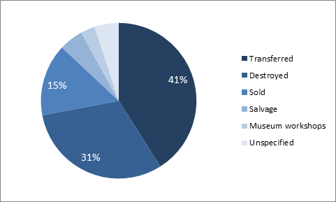 https://dx.doi.org/10.15180/191205/005The percentage of material deaccessioned shows strong variation across the collecting periods. Some 95 per cent of the material collected after the Second World War is still located within the collections. Only ten per cent of the nineteenth century collecting survives, while 79 per cent of objects from the interwar collecting period are still in our collections.