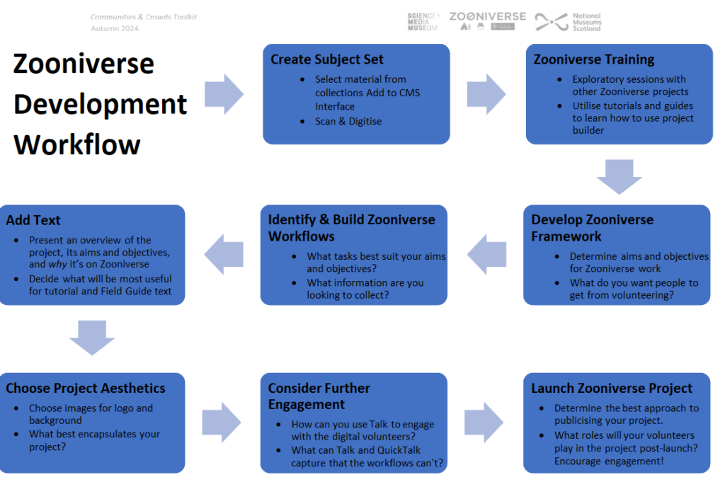 The case studies, workflows and templates in this toolkit are only a starting point. They describe the way that the volunteers and project teams who make up Communities & Crowds at both NSMM and NMS have been able to develop volunteer-led processes for creating new digitised assets of photographic collections which have resulted in online crowdsourcing projects that aim to answer the questions our volunteer communities are interested in.
