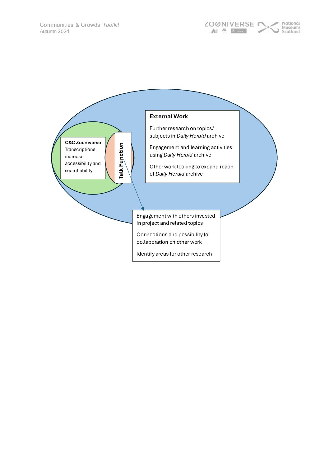 Communities & Crowds started with a central concern: cultural heritage institutions have a long history of delivering in-person volunteering opportunities for individuals to learn skills and work with collections. Equally, there are many successful examples of using crowdsourcing for meaningful, collections-oriented engagement with volunteers online (Ridge et al, 2021). However, there are no examples or case studies which allow for a holistic volunteering opportunity throughout the entire process of selecting and digitising materials, creating a crowdsourcing project, and managing the online community and data in a space like Zooniverse (https://www.zooniverse.org), the world-leading platform for online crowdsourced research. To underpin our new process, we looked to co-creative models within the museum sector focused on participatory decision making (Benoit III and Everleigh, 2019; Simon, 2010). Through a co-creative model, the volunteers and project staff worked in dialogue to make decisions, overcome obstacles and develop the project outputs.