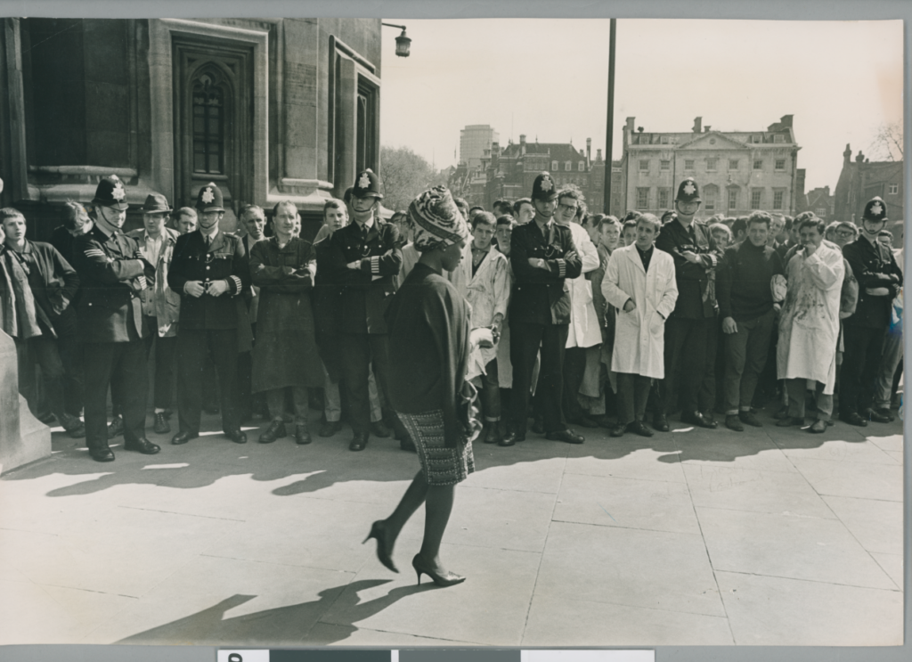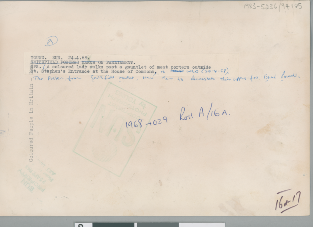As an example, one of the images digitised by the volunteer researchers shows a black woman walking in front of a group of white male demonstrators in support of the racist and fascist MP, Enoch Powell.