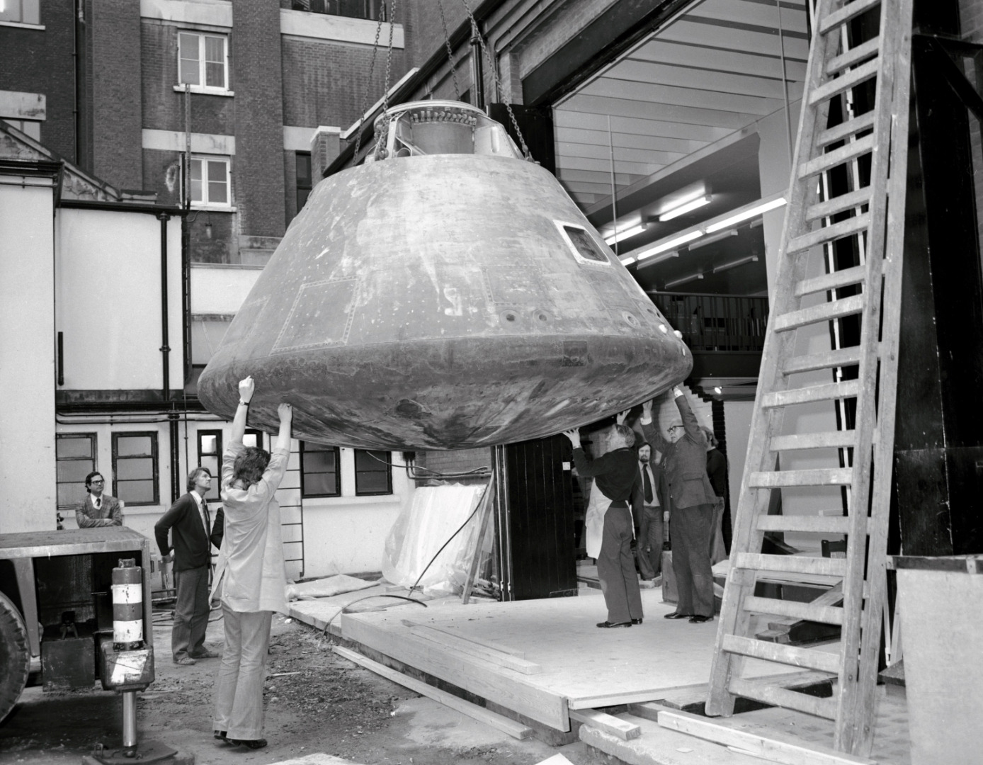 Friendship 7 – the spacecraft in which John Glenn became the first American to orbit the Earth – was displayed for just two and a half days but attracted 25,000 visitors. Astronaut Alan Shepard’s Freedom 7 formed the centre piece for a larger temporary display that remained for over six months and was seen by almost 350,000 visitors (Gouyon, 2014). The Apollo 10 command module touched down in the Museum in January 1976 after a European tour in which it had suffered significant damage during its public displays.