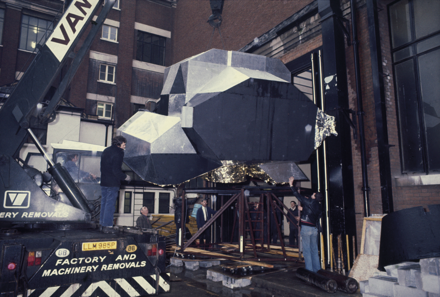 Yet alternative translations and meaning of such an artefact became crucial in the case of the mannequin. It had been flown around the Moon and back to Earth on the Zond 7 mission of 1969, the mannequin’s embedded radiation detectors gauging the distribution of harmful ionizing particles that would fall on a real cosmonaut travelling on a similar trajectory around the Moon. In the exhibition’s closing room, where it was finally moved to, that description was retained on the accompanying label but now set against the greater ambiguity of its display setting. The scene was intended to move the object from one of fact to one of speculation. In this room the figure was both of humanity yet not. It has limbs and a body, its face is cast in the image of Yuri Gagarin (who had died in 1968). Yet it appeared cold and metallic, a burnished gold. Its arms and legs articulated as if an android. The figure appeared both robotic and human – a Maschinenmensch from the space age.[13] It had been flown around the Moon as an avatar, an emissary, a representative of the human race for whom the mission was deemed too dangerous for a real cosmonaut.