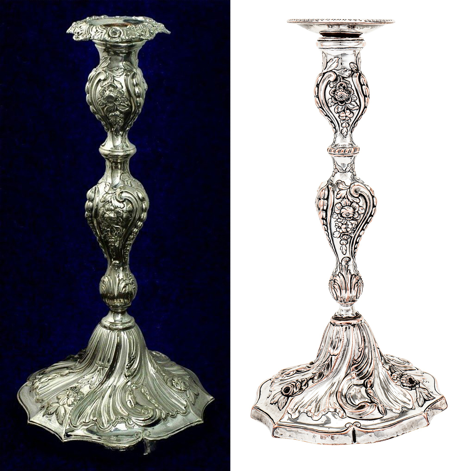 But by 1769, use of the drop stamp for the making of components in high relief for candlesticks and other products had long been established in the Sheffield plated and silver trades and, following the example of Sheffield, was also well underway at Matthew Boulton’s Soho manufactory in Birmingham. The Birmingham Assay Office collection has a pair of Boulton and Fothergill stamped silver candlesticks with hallmarks for the Chester assay year 1768–69, a design in the French taste also made in Sheffield plate with the same dies, as can be seen from a plated pair recently sold at auction (Figure 8). Clearly the foundations for this Birmingham product were laid far in advance of Pickering’s 1769 patent.