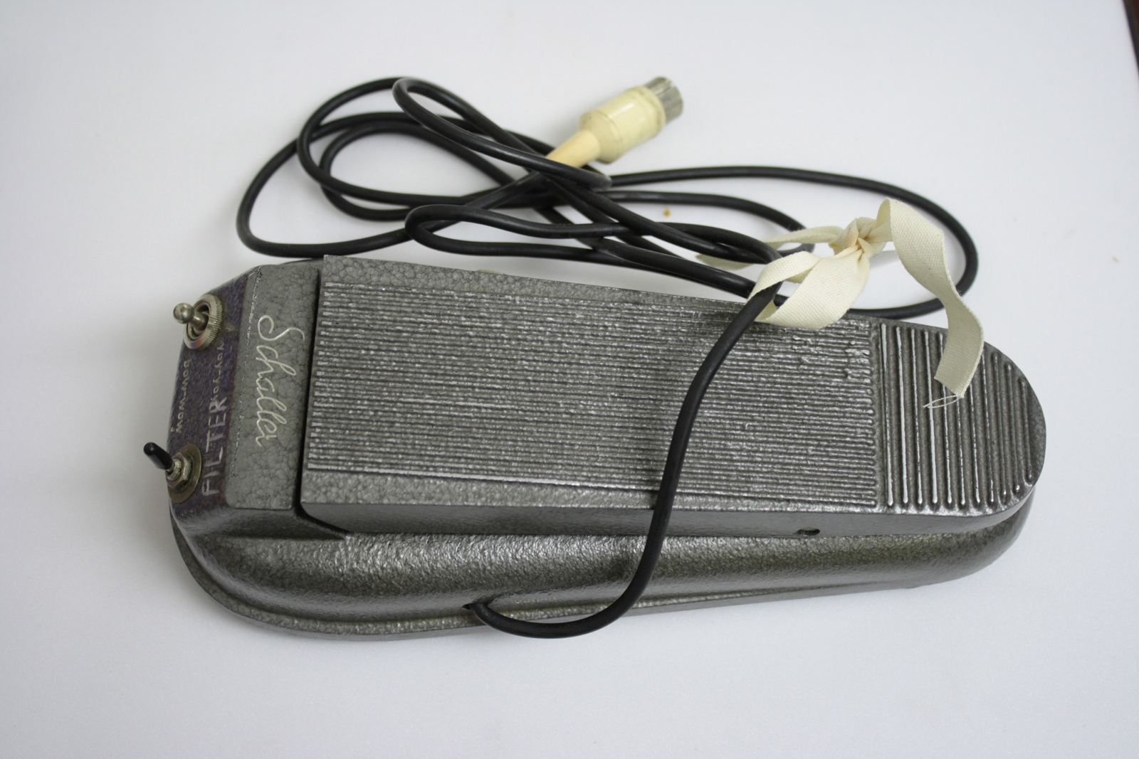 The following year, Davies added a further two pedals: a commercial ‘wah-wah’ unit of the kind typically used by guitarists (Figure 10), and a fuzz distortion and phase-shift pedal custom-built for Davies, again, inside the casing of a commercial volume-control pedal (Figure 11); both of these pedals were further modified by Davies so that they could optionally function as simple volume controls, bypassing the sound transformation circuitry, thus adding further flexibility to his performance setup while keeping the number of pieces of equipment required to a minimum.