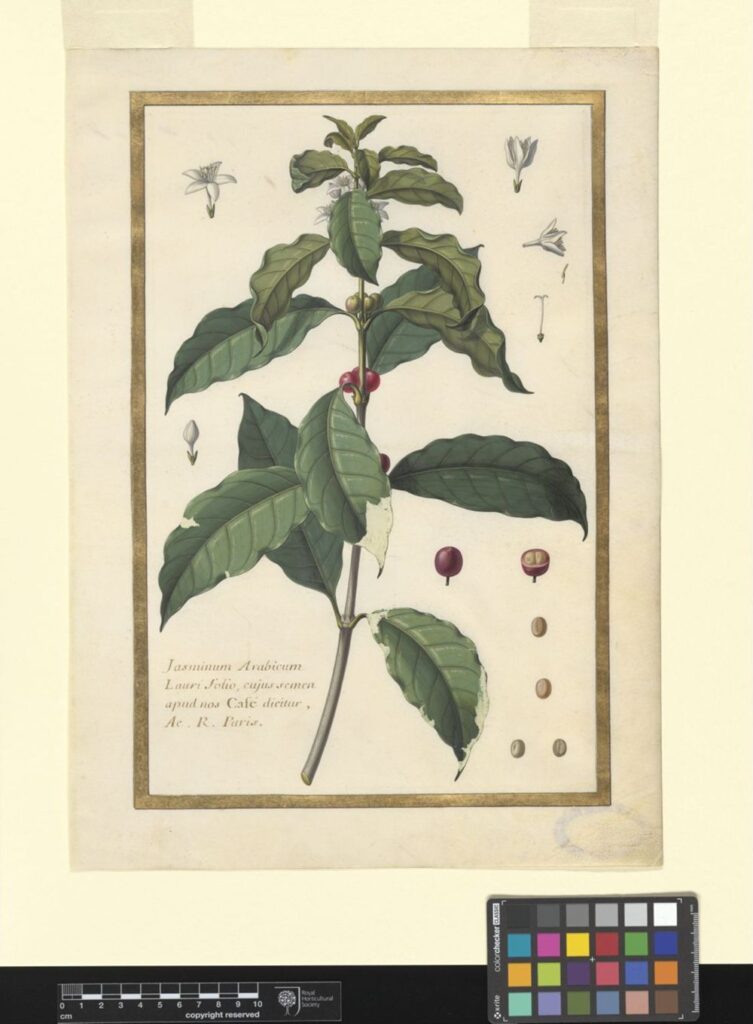 A watercolour of a coffee plant on display by Claude Aubriet, the official painter to Louis XIV and XV – lent by the Royal Horticultural Society Lindley Collections – revealed a fascinating economic botany story. It depicted a coffee plant given to Louis XIV in 1714 by the Dutch. In 1721, coffee, potentially originating from this actual plant, was taken to Martinique, France’s Caribbean colony, to be exploited as a crop.