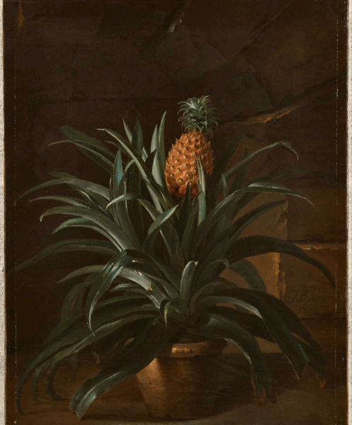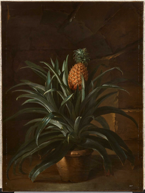 Notable objects on display included a painting entitled ‘Pineapple in a pot’ by Jean-Baptiste Oudry (1733) – illustrating the mastery of Louis XIV’s chief gardener, Jean-Baptiste de La Quintinie, who optimised light and heat conditions to enable imported crops such as pineapples and date palms to thrive in Versailles’s hothouses. Oudry’s painting was a portrait for the first pineapple to be successfully grown in continental France and was presented to then-King Louis XV on Christmas Day. The portrait would later hang in Marie Antoinette’s chambers in Versailles’s Petit Trianon.