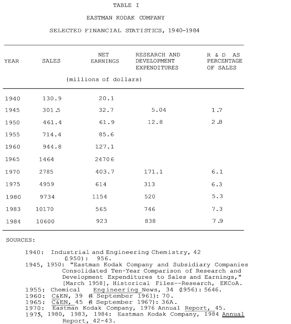 Two relevant books that appeared after I completed the original version of this paper in 1985 are Eastman Kodak Research Laboratories, Journey: 75 Years of Kodak Research (Rochester, NY: Eastman Kodak Company, 1990), and Douglas Collins, The Story of Kodak (New York: Harry N. Abrams, Inc., 1990). See also Nicolas Le Guern’s doctoral dissertation, Contribution of the European Kodak Research Laboratories to Innovation Strategy at Eastman Kodak (Leicester: De Montfort University, 2017). Back to text