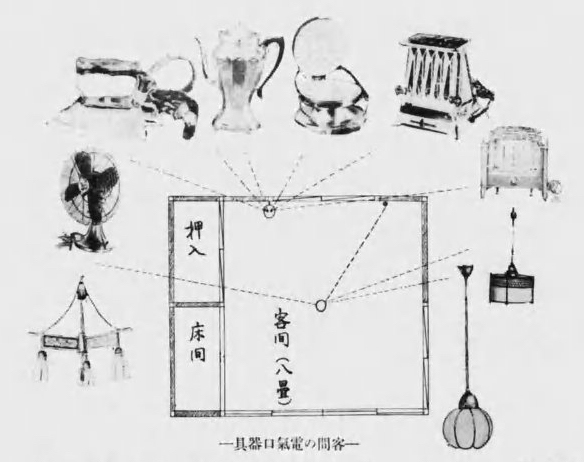 https://dx.doi.org/10.15180/180904/004Gaps between ideal visions of normal electrical life and the domestic capacity to live it created tensions that spilled over into different forms of protest and resistance. The case of DEPA in Japan offers an interesting insight into how promoters’ visions of an electrified life were mismatched with the financial and technical capacities of households resulting in frustration. The DEPA’s 1929 publication Sumiyoi Ie (‘a comfortable house’) set out standard specifications for the ideal number of lamps, switches and sockets in an electrified house (Katei Denki Fukyū Kai, 1929). Following these specifications, fifteen model houses – intended as electric homes for ‘the masses’ – were built in Tokyo, which were equipped with 9–20 lamps, 9–20 wall switches and 5–10 wall outlets. These houses were filled with what the DEPA’s promoters thought essential for modern living – including electric lamps, heaters, cookers, irons, vacuum cleaners, electric fans and the refrigerator (see Figure 3). The lifestyles being promoted by DEPA, which were well beyond the financial means of average income consumers, were also out of sync with the technical capacities of the targeted households. Many of the electricity users who participated in an essay competition held by the Matsushita Electric Company in 1933 thought the problem had less to do with their financial capability than with the prevalent home wiring arrangements. An essay written by a consumer in Yamaguchi, among 110 papers making a similar point, complained that ‘when one wants to use a radio, an iron and a cooker, one has to ask the company to connect three supply cables… With such a supply arrangement, how can electrical appliances become popular?’ (Matsushita Denki Seisakusho, 1933).