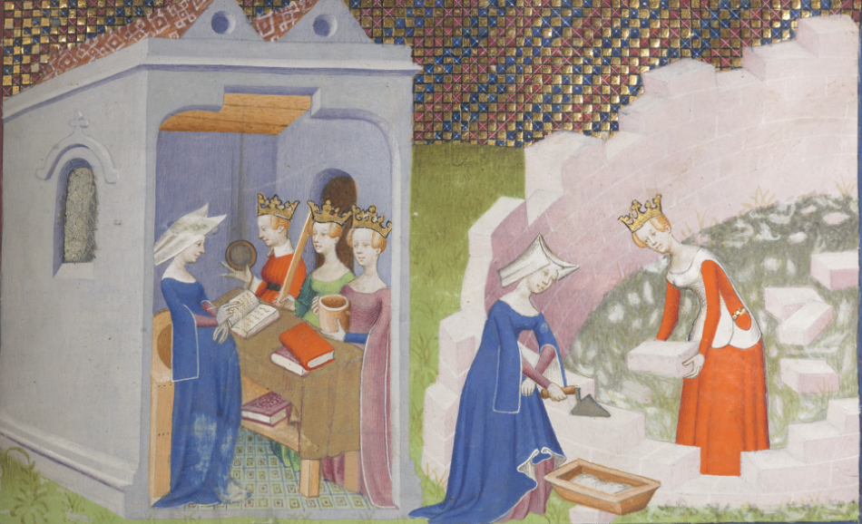 Three manuscripts accompany Queen Eleanor: Hildegard of Bingen’s Liber divinorum operum (Book of Divine Works, which the Abbess wrote between 1163 and 1173); Christine de Pizan’s Book of the City of Ladies (1405), and a letter from Alice Crane to Margaret Paston, which includes the following sentence: