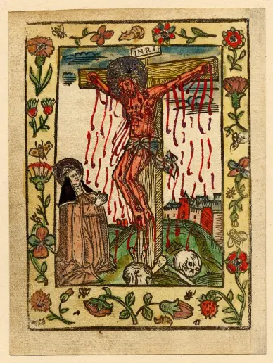 The last section of the exhibition is dedicated to the lives of nuns: their communities, devotional practice, their literary compositions, their music, their rules and regulations, and their artwork. A Middle Dutch prayer book, c. 1517–23, was made for a woman in the Third Order of St Francis and contains several woodcuts.