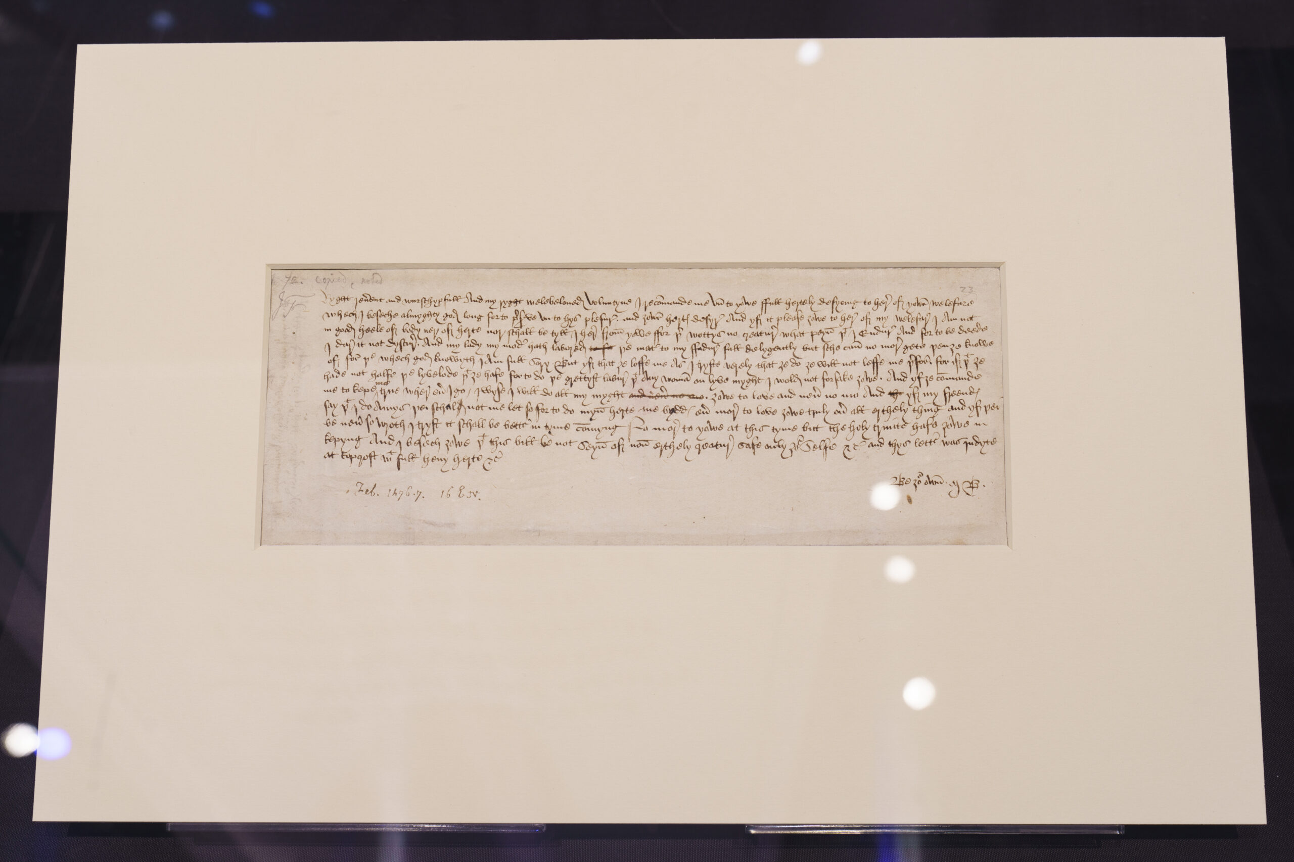 This letter is, unfortunately, in a somewhat inaccessible location: suspended on a wall behind a display case, it is impossible to view at close quarters, especially for visitors in wheelchairs or those unable to lean over the display cabinet. This important artefact also deserves more space and fanfare than it receives in the exhibition. The autographed letter, three manuscripts in a display case, and a subtitled video clip of the 2018 production of Bernard Shaw’s Saint Joan (played by Condola Rashad) are all closely packed against one wall; the film would benefit from a larger screen, dedicated viewing space, and seating, which would also highlight the significance of the material more emphatically.