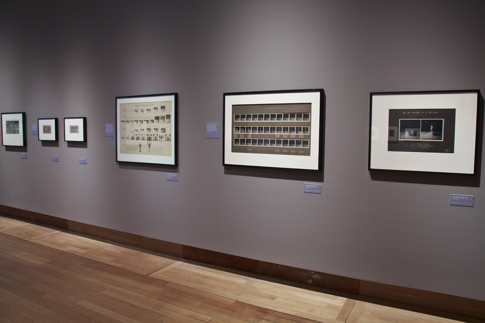Our second stated goal was to explore ‘the meanings artists and curators have invested in the early experiments, and what their work exposes about changing popular perceptions of science and technology’ (Burbridge, 2015). That aim appended and changed the meaning of the first, casting the identification of visual similarities as a starting point rather than a conclusion; a means, not an end. We were interested in what science photography meant to artists and societies at different times and in different places and, in particular, what those cultural perspectives meant to each other. That approach was indebted to the work of the German philosopher Walter Benjamin, for whom history should be understood, not as an inevitable linear unfolding, but as a type of constellation: ‘a past charged with the time of now’ (Benjamin, 1940). Our approach was chronological but not teleological; an effort to allow the importance of the science photographs to unfold and build across the exhibition. We wanted to encourage audiences to forge visual and conceptual associations as they made their way from the examples of early scientific innovations in the first room, via avant-garde art of the twentieth century in the centre of the exhibition, to projects made by artists during the past ten years exhibited together in the final room. Repeated motifs, techniques and forms aided audiences through that journey: the surprising appearance of figures frozen in motion, for instance; the interplay of positive and negative images; or the quasi-abstraction achieved when the world is viewed through a microscope. But we also tried to maintain the physical and conceptual space necessary for additional and unexpected links to come into view. Our goal was to promote an active engagement with the manufacture of meaning, in an overarching structure that privileged the analysis of history over a reflection on form.