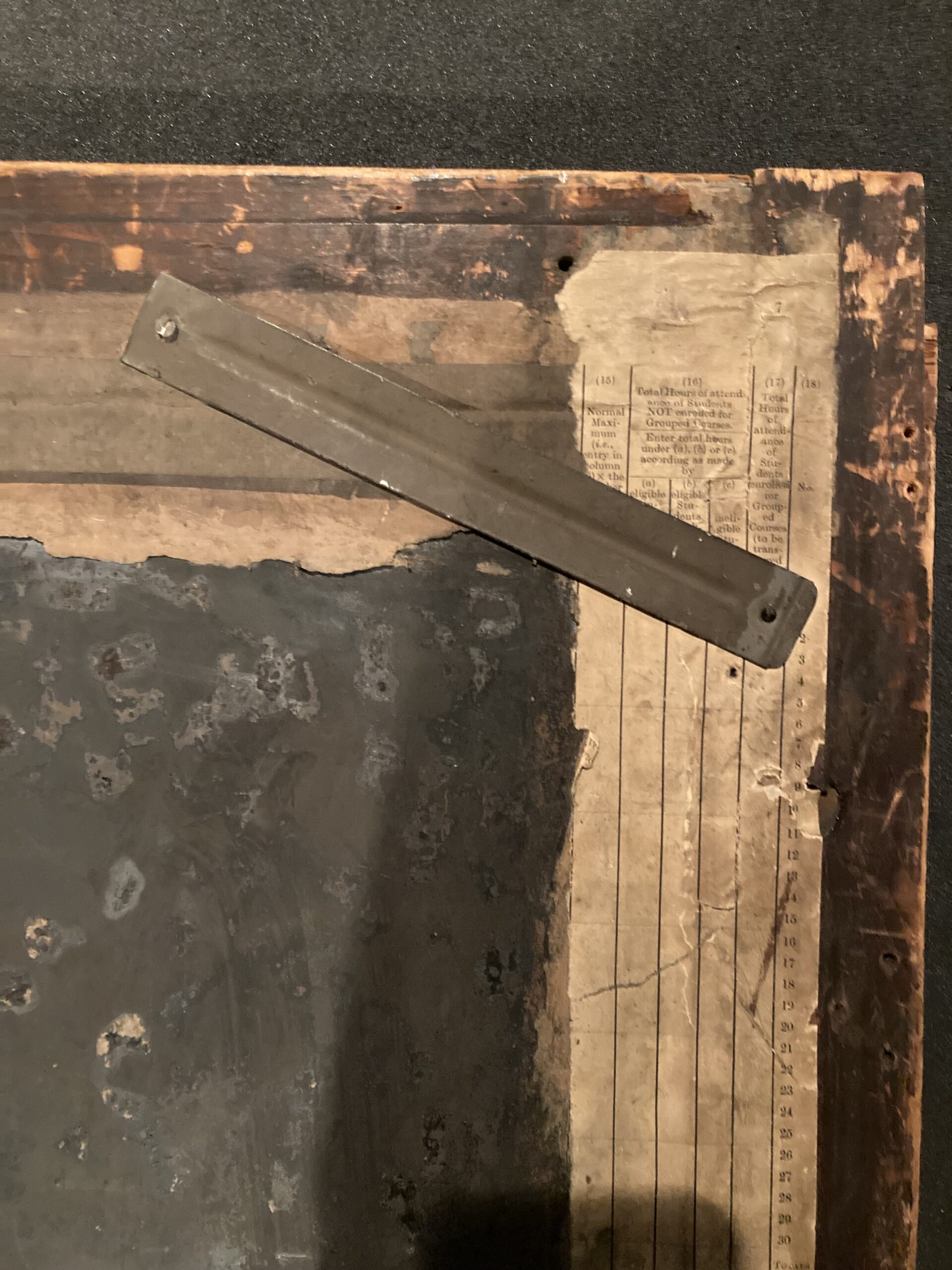 The rear of the plate (Figure 10) reveals the supporting ‘superstructure’ (Talbot, in Siegel, 2017, p 101) that has made this image possible, as the frame is supported both by robust, industrial metal brackets and papered with nineteenth century attendance records from an educational institution. These institutional documents visually show the support of educational institutions in nineteenth century Birmingham in linking this group of scientists and manufacturers across the arts and industry within the city. Further, the role of such institutions in research and development, as well as making scientific education accessible to the manufacturers of Birmingham, was key to the success of Woolrich’s application of his invention, as it allowed connected networks of individuals to collaboratively develop the use of processes and materials.