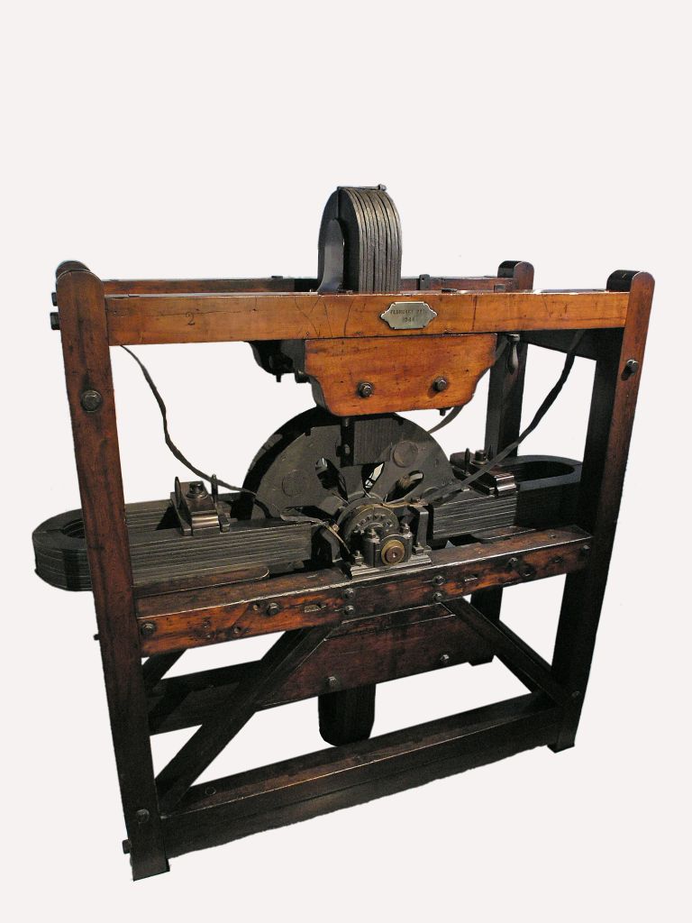 This section discusses key technological developments that directly impacted the processes of daguerreotype photography, especially Woolrich’s magneto-plating machine. The chemical process allowed by this machine within the production of silverplate for the daguerreotype has been tested by the author in experiments described later in the article. Birmingham was the centre for invention in electroplating metals at this time and the stakes were high as photography offered huge commercial potential which was restricted by patents and licensing. In 1840 innovations by GP Dr John Wright (1808–1844) and George Richards Elkington in the use of potassium cyanide[9] as an electrolytic agent made electroplating possible. In the early 1840s John Woolrich Snr (1791–1843) developed a further significant invention in electroplating technology. This was the magneto-plating machine (Figure 4) which Woolrich’s son, John Stephen Woolrich (1820–1850) later patented. Woolrich Snr’s device improved the electroplate process by offering a continuous and consistent power source using an electromagnetic dynamo rather than unreliable early batteries. The magneto device created a consistent source of electricity using the principles of Faraday’s law of electromagnetic induction.