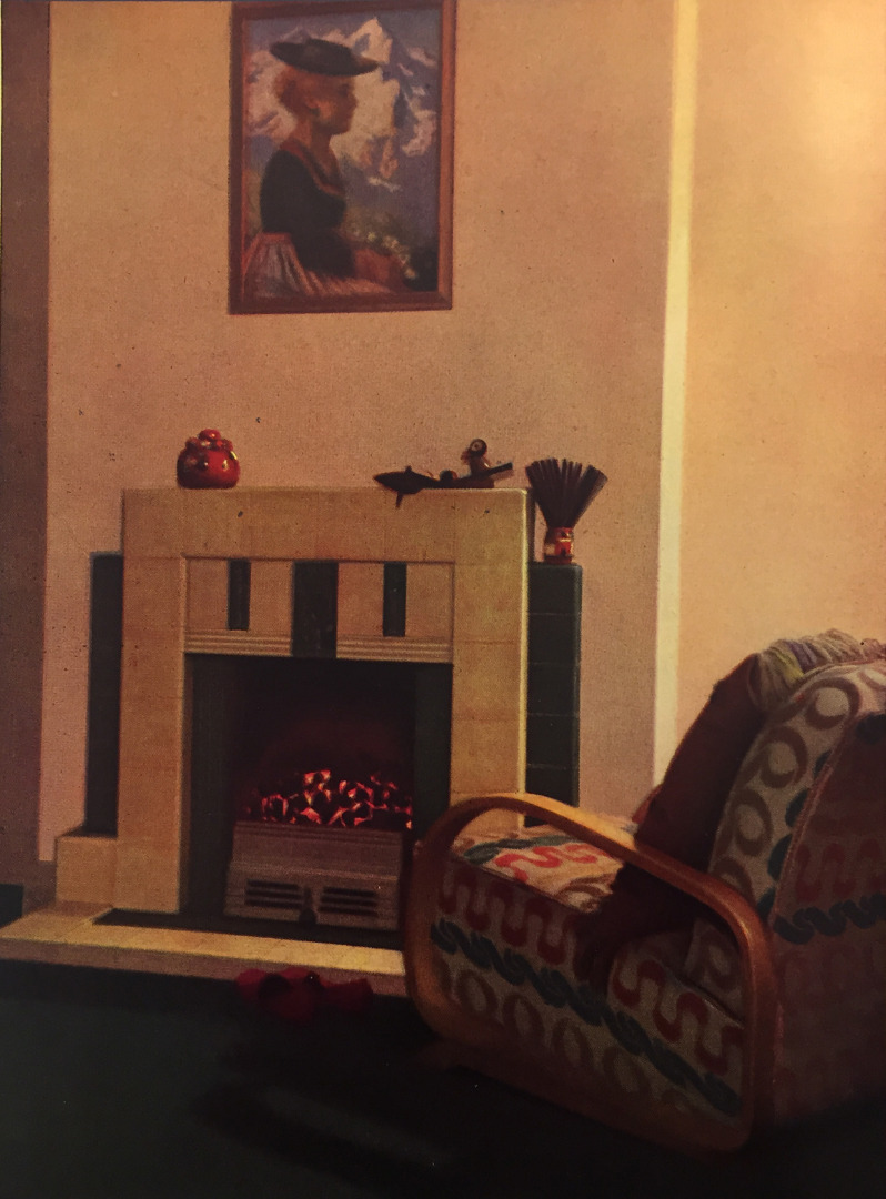For a room that is to be lived in, only a coal fire will do… This evening, while I write, the same pattern is being reproduced in hundreds of thousands of British homes. To one side of the fireplace sits Dad, reading the evening paper. To the other side sits Mum, doing her knitting. On the hearthrug sit the children, playing snakes and ladders. Up against the fender, roasting himself, lies the dog. It is a comely pattern, a good background to one’s memories, and the survival of the family as an institution may be more dependent on it than we realise.