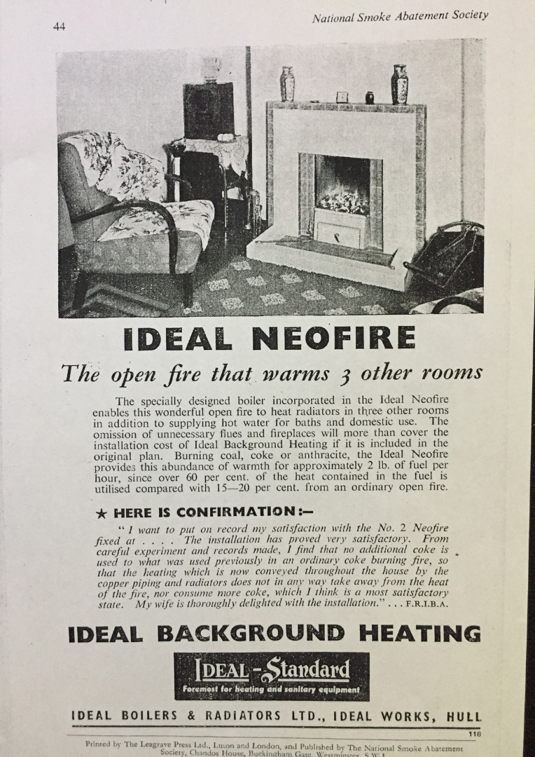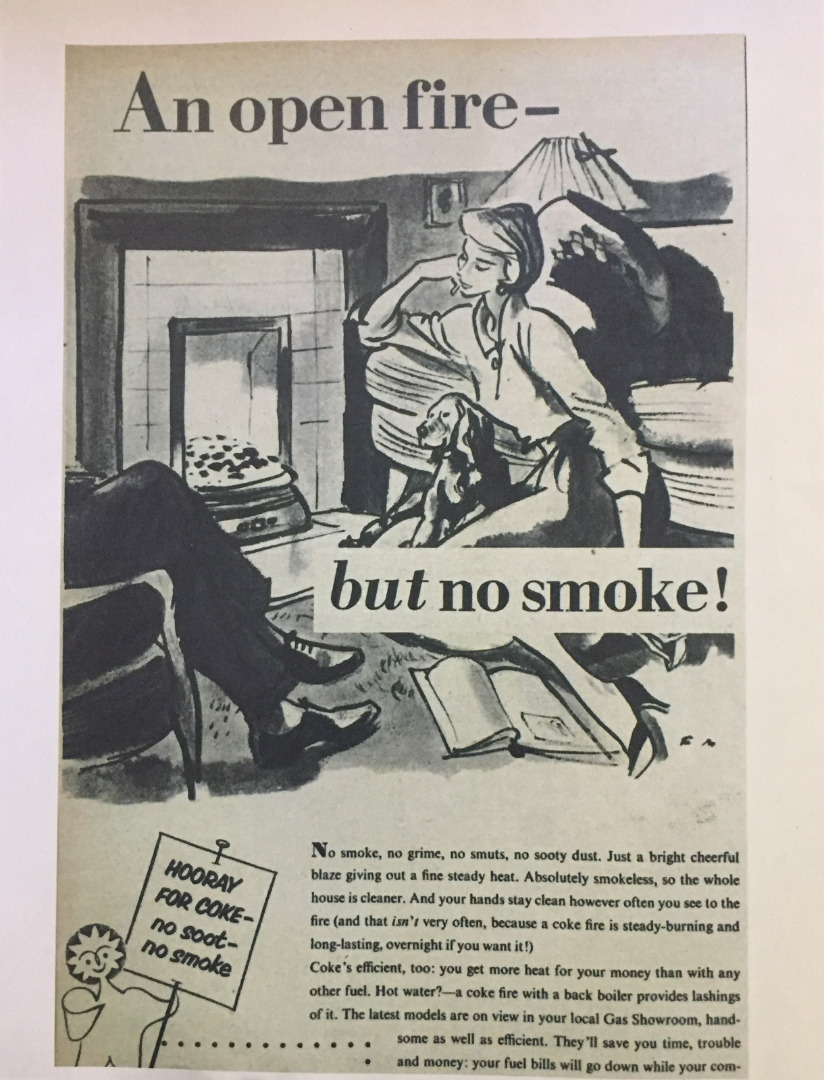 In spite of the accumulated symbolism of the coal fire there was growing acknowledgement in the post-war period that burning coal from domestic fireplaces was polluting the urban environment. Coal was difficult to store in bulk, it was awkward and dirty and with post-war shortages it was not necessarily a cheap option. Increasingly, the open fire was being used in combination with other forms of heating such as gas or electric fires. The coal fire might possess residual sentimental values, but it was not the fuel for a modern, clean, stream-lined post-war Britain.