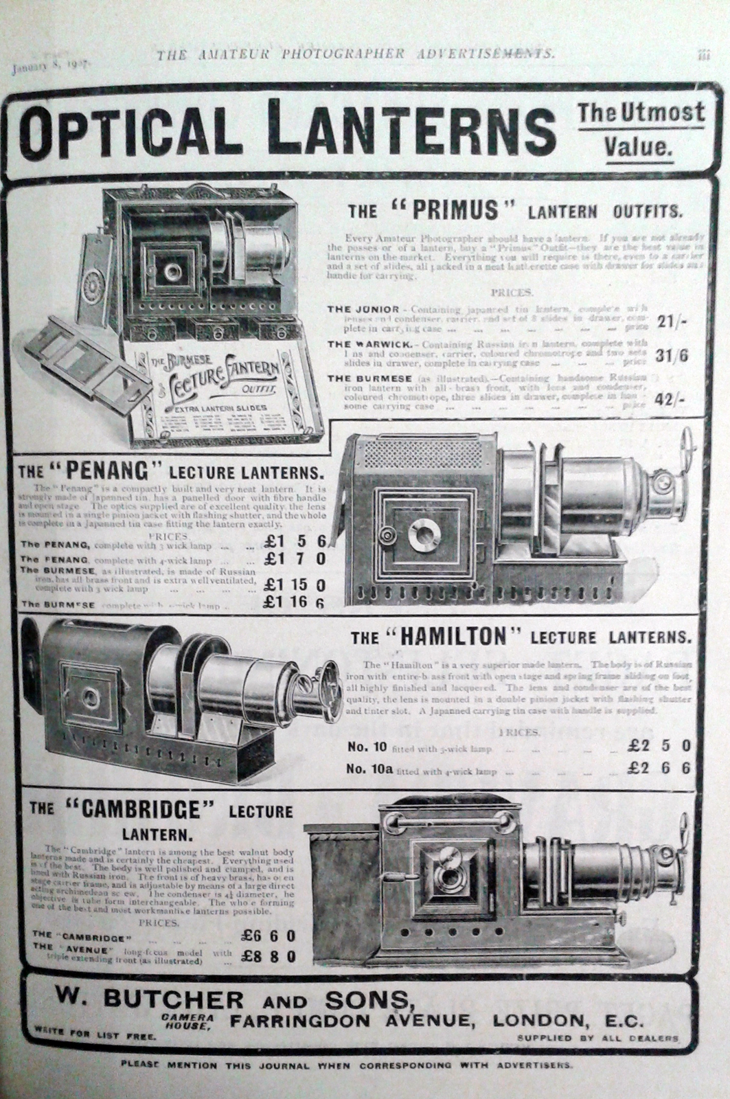 The images in Figures 2 and 3 show lecture lanterns for both scientific use and amateur home entertainment from the early 1900s, giving a sense of the projectors on the market at the time.