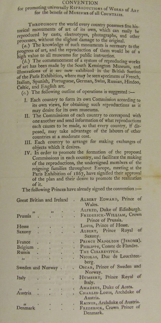 As part of the campaign to render the exhibit permanent, many of the objects were copied before their return after the exhibition closed in December 1876 (de Clercq, 2003, p 13). Several hundred objects were photographed, but three-dimensional electrotype copies were also made in an eerie anticipation of the modern practice of 3-D imaging. Again, this reflected a collaborative internationalist thrust. At the international exhibition in Paris in 1867, a convention signed by a dozen princes ordained that works of art should be reproduced systematically for international distribution in the ‘Convention for promoting universally Reproductions of Works of Art for the benefit of Museums of all countries’ (see Figure 4).