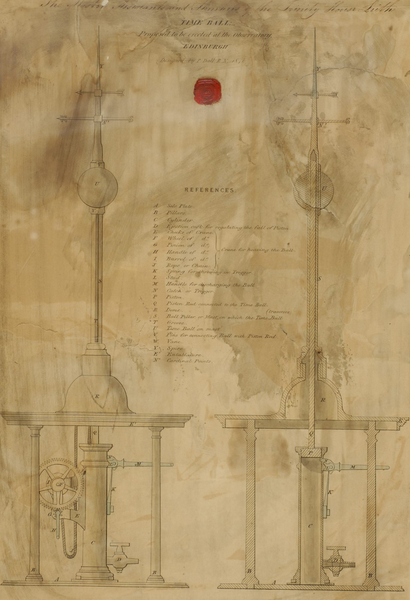 Smyth later referred to Dall’s model and images as an ‘interesting mark of this first surge of public opinion’ (Smyth, 1853, pp 191–192), preliminary to his own representations to government, the Edinburgh Chamber of Commerce, and the ROE’s Board of Visitors from 1846. However, the timing suggests continuity, and Dall’s visual aids seem to have played a role in consolidating interest among the academic, maritime and civic authorities that made the case to the Admiralty and Treasury. Dall’s model was still available to be shown to the interested audience of Fellows of the Royal Scottish Society of Arts (RSSA) in 1853, shortly after the time ball had at last been erected.