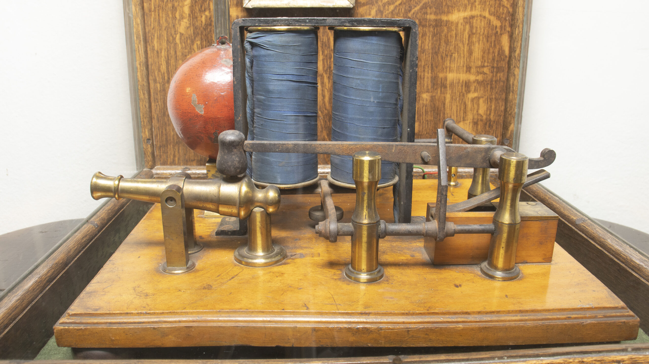 The maker of the model, William Dickson Hart, was based at 7 North College Street, very close to the university and the site of Wilson’s new Industrial Museum.[5] He was, like Wilson, Smyth and Ritchie, active in the RSSA, usually in relation to electrical instruments and lighting, for which he often received thanks and occasionally prizes. There are instruments by him at NMS, including a dissected model of an electric coil that he donated in 1856 and an instrument for reversing currents.[6] The latter has been identified as ‘one of a number of telegraph related items’ that Wilson commissioned from Hart, ‘in all probability used for teaching purposes’ (Green, 2012, p 88). Wilson, who had discussed electric time signals alongside the wonders of the telegraph since at least 1852, included a lecture on ‘Electrotechny’ in his university course (Wilson, 1852, pp 73–77; Wilson, 1866, p 288).