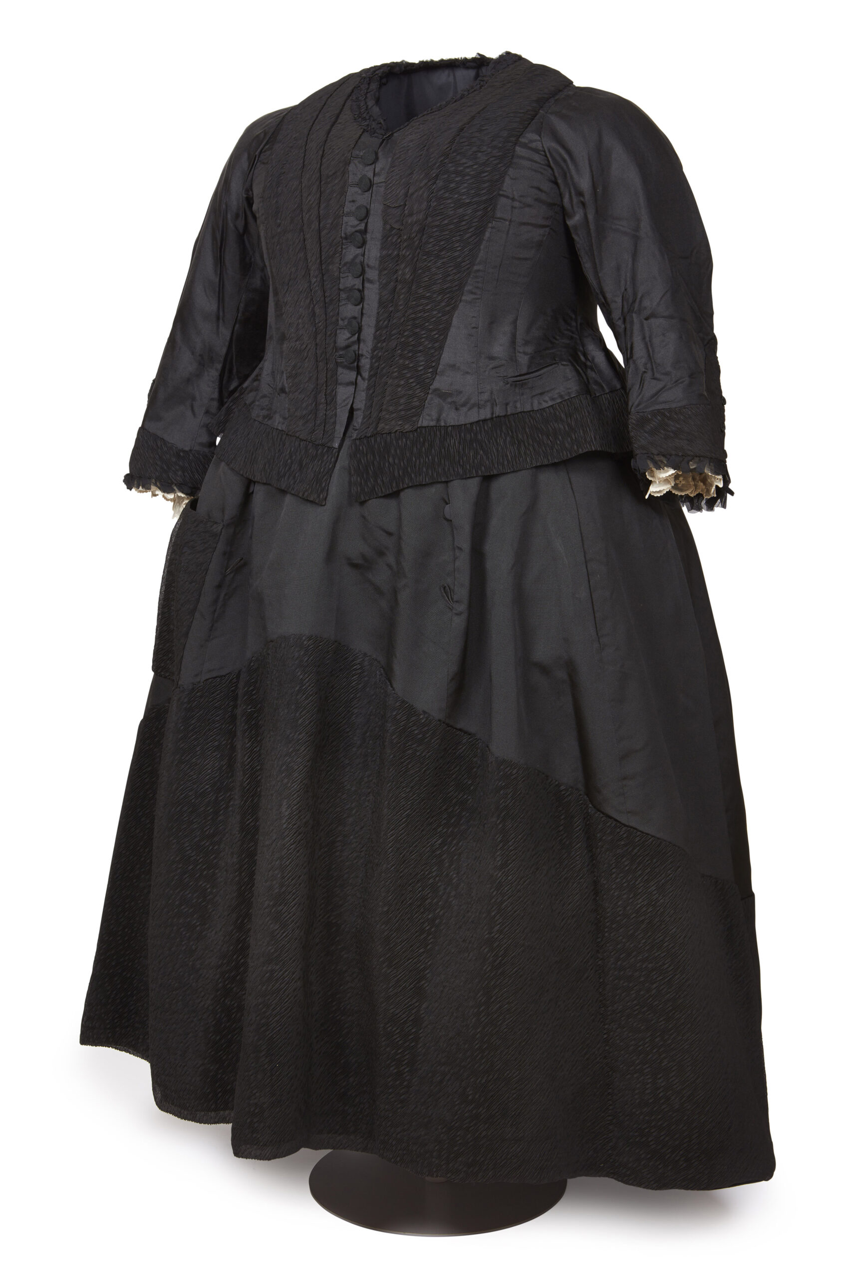 The curators made their intention to challenge the assumption about a monochromatic Victorian Britain clear by bringing the visitor face to face with it from the start. As the visitor stepped into the dimly lit lobby of the exhibition they were greeted by a blown-up print of one of Gustave Dore’s Dickensian-like images of nineteenth century London with its slums and smog. Opposite, Queen Victoria’s imposing and era-defining black mourning dress was on display, the first of many show-stopping objects to follow.