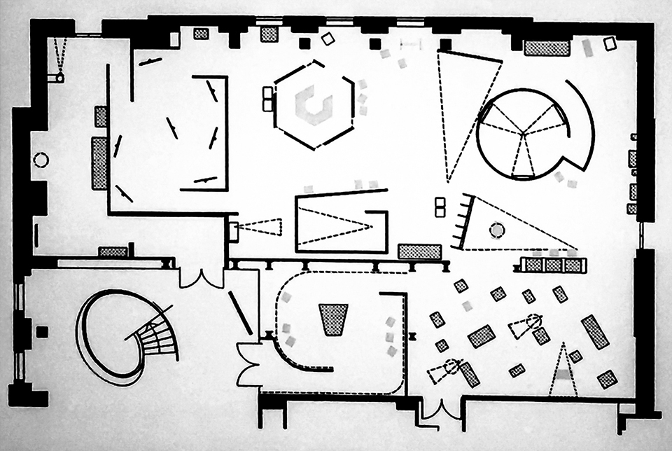 The Wellcome Collection’s This Is A Voice presented sound within the context of the human voice, including a combination of scientific objects describing human anatomy related to vocalisation and hearing, alongside creative works of music, sound art, and multimedia, creating a dialogue between scientific and cultural approaches to the voice. According to the exhibition’s curator Bárbara Rodríguez Muñoz, in a presentation she gave in 2016 at the “Acoustics on Display” symposium at the Science Museum in London, she was attempting to explore the voice beyond linguistic terms, focusing on communication through melody and rhythm. Muñoz described an early intention of the exhibition’s designers to “work with sound … as a friend as opposed to an enemy, and to use it to create a narrative across the gallery space” (Currall and Muñoz, 2016). This led to a variety of architectural approaches that primarily kept the space open rather than attempting to compartmentalise sounds in isolated chamber-like spaces (see Figure 3). However, one of the most important strategies, according to Muñoz, was in managing visitor expectations by advertising the exhibition as an experience where visitors would be “surrounded by voices”, leading to an audience who was generally more prepared to listen to an exhibition than is usually the case.