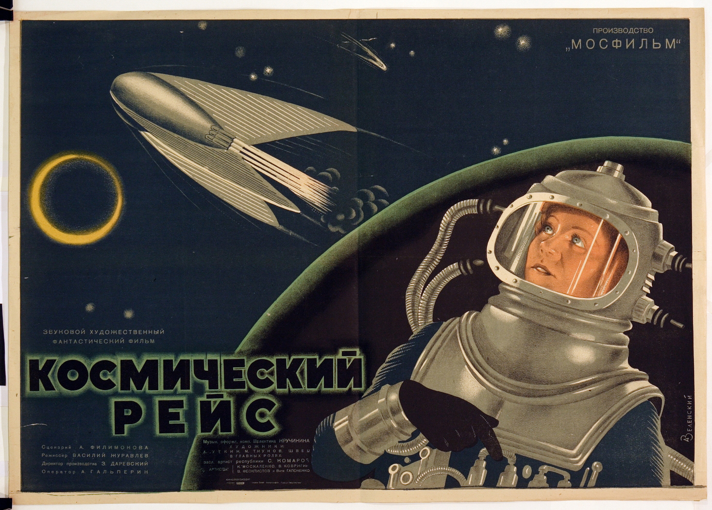 During his teenage years Tito anticipated his own space voyage in the context of the popular science fiction of the time – a vision that prevailed alongside the governmental and military space programmes. The image of the space-age interstellar traveller was already drawing on a long lineage of civilian explorers in speculative science fiction literature and film at the turn of the twentieth century. The pioneering trip to the Moon in Jules Verne’s novel, De la Terre à la Lune (1865; From the Earth to the Moon), Georges Méliès film, Le Voyage Dans la Lune (1902; A Trip to the Moon), and the Soviet Union’s feature film Cosmic Voyage (1933), portray adventurers and enthusiasts embarking on journeys inside of spacecraft. Elements of the space tourism industry also first appeared in the space age fictions of Arthur C Clarke’s, A Fall of Moondust (1961) and Joanna Russ’ Picnic on Paradise (1968), which feature wealthy Earthlings and their misadventures in space travel.