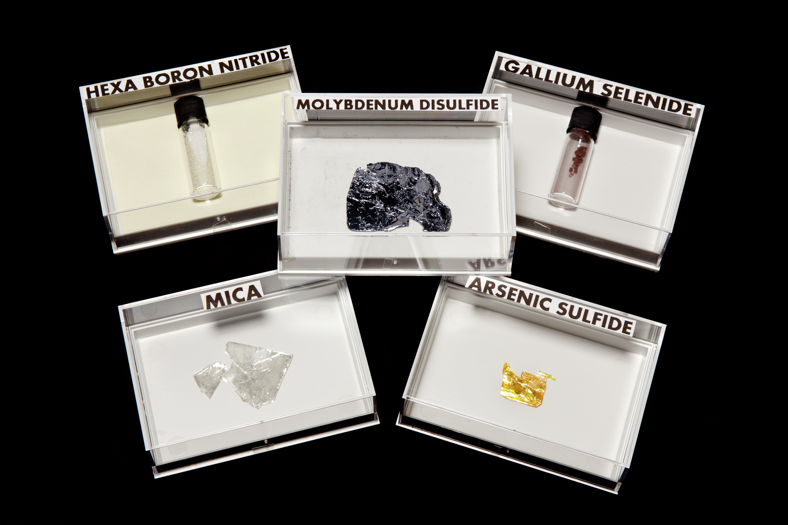 This set of five 2D samples demonstrates that the isolation of graphene in Manchester in 2004 opened the door to a new class of 2D materials. In the Wonder Materials exhibition, they featured in a display in the present-day section of the exhibition about Dr Roman Gorbachev, a scientist based at the University of Manchester working on 2D heterostructures – stacks of single-layer materials with different properties which can be used to create bespoke designer materials for specific purposes. These samples of 2D materials for research were accessioned into the Science Museum Group collection in 2016 from a University of Manchester spin-out company called Manchester Nanomaterials. The samples demonstrate the fact that graphene opened a door to a new area of research and provide a snapshot of the status of 2D materials research just over a decade after the first 2D material, graphene, was isolated. In fact, a lot of the research going on at the NGI today is not directly into graphene, but other 2D materials like these. The research and commercial potential of graphene led to large investment in facilities, such as the National Graphene Institute (NGI) at the University of Manchester.