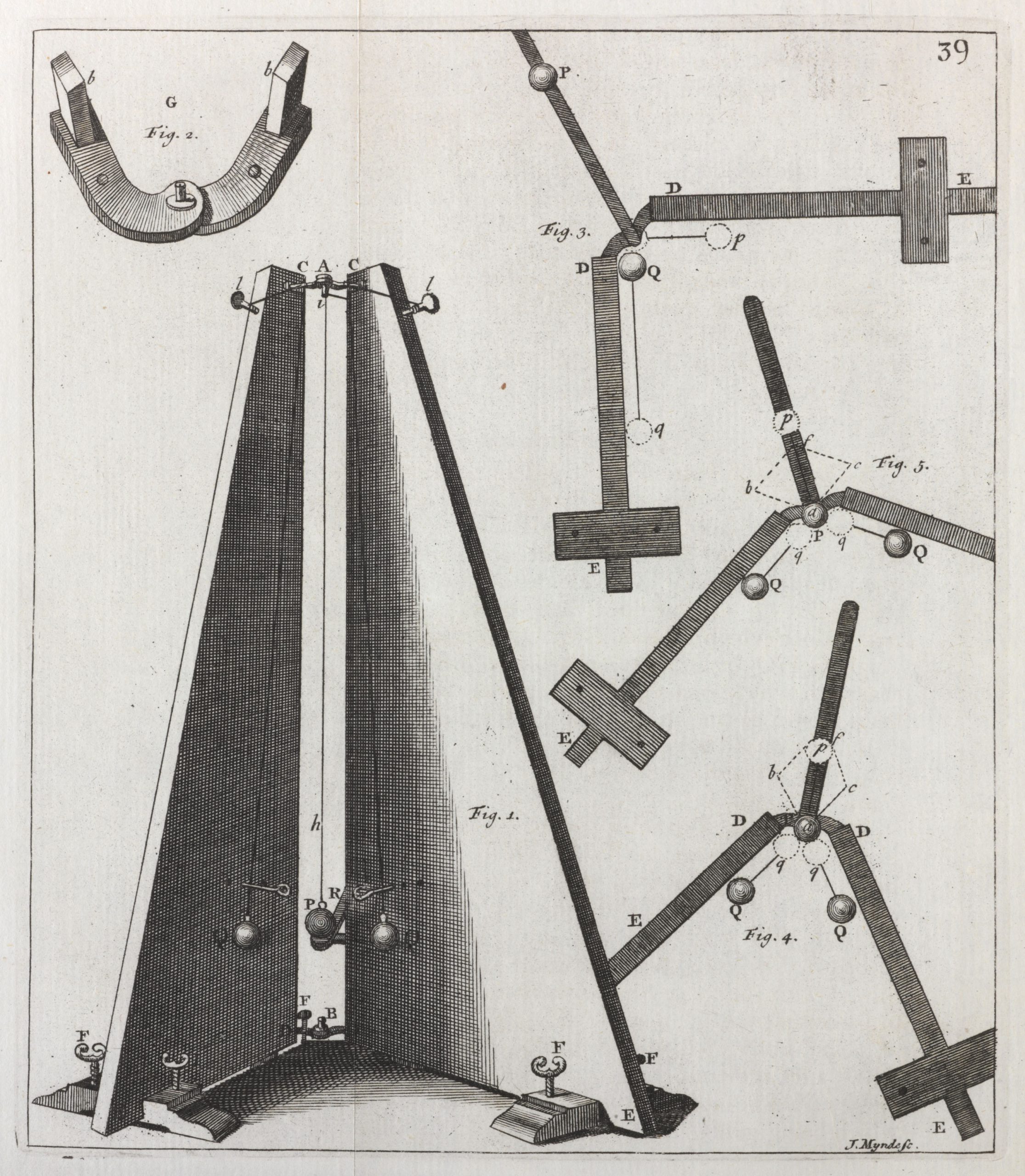 Over the years that he delivered lectures on natural philosophy at his home, ’s Gravesande and the instrument-maker Jan van Musschenbroek (1687–1748) worked closely together to design, produce and improve the machines depicted in successive editions of Mathematical Elements (de Clercq, 1997b, p 85; Allamand, 1774, p xxviii). Thus the three Latin editions of the book function as snapshots of a constantly evolving collection, which now resides at the Museum Boerhaave in Leiden (Figure 7).
