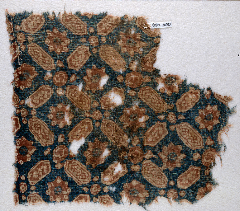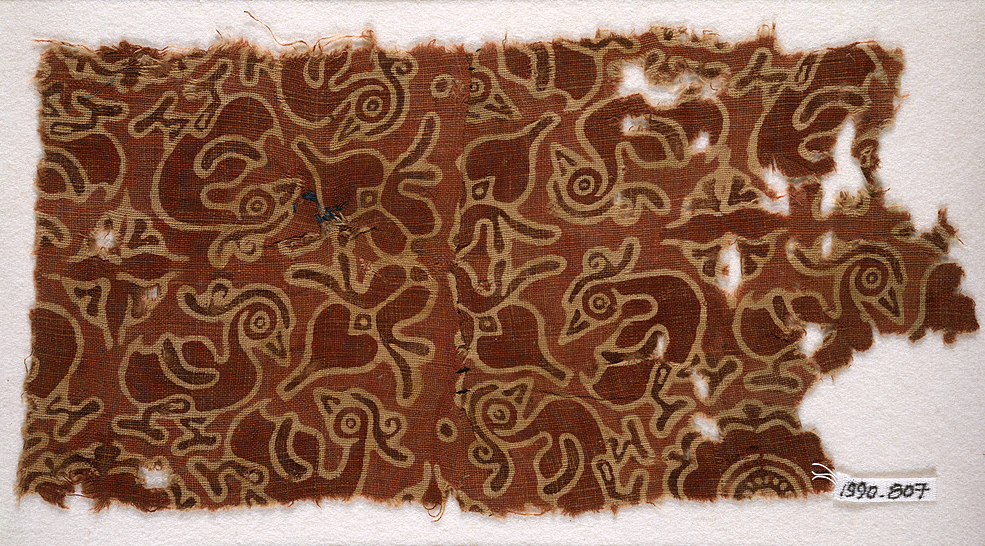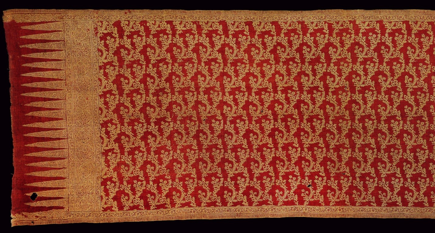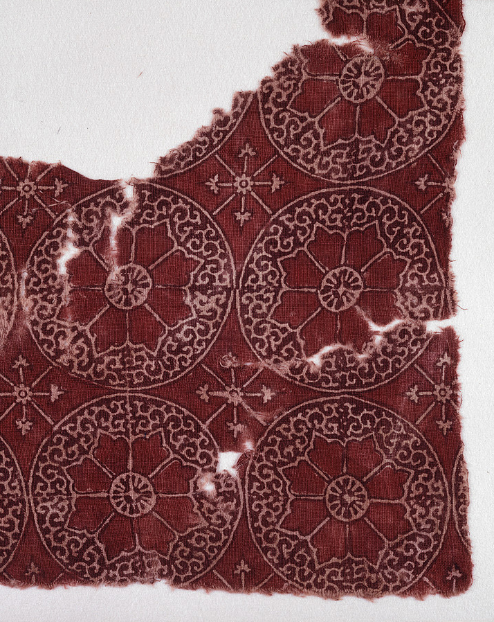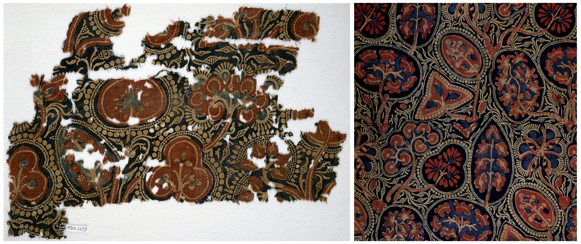 From the eighth century, Egypt was home to avid consumers of Indian cottons. We know this from fragments of cloth that were discovered in Fustat, the old city of Cairo, in the early twentieth century. (These fragments have been dated to between the eighth and sixteenth centuries.) The Ashmolean Museum in Oxford possesses a large collection of these textiles and a few examples are given in Figures 1–4. Much of the Fustat cloth was of low to middling quality – definitely not a luxury item. How do we know this? First, the cloth is not hand-painted but printed, which is a less expensive process. Some examples of painted cloth are presented later in this paper and the difference in fineness and workmanship is apparent. Second, the cloth was printed in two or three colours, which requires fewer steps than cloth with several colours, and is again less expensive.