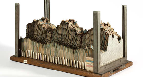 https://dx.doi.org/10.15180/One object in the collections of the Museum of Science & Industry (MSI), Manchester, literally materialises electricity demand – a 3D chart showing demand by the hour, day, month and year, in the Manchester area, for the years 1951–54 (see Figure 1). It is comprised of 675 cards, each of which is known as a ‘load curve’ or ‘load profile’, referring to demand as ‘load’ on the grid system averaged over a time interval of a given duration, in this instance thirty minutes. Assembled as a 3D chart over a longer time period, it was known within the electricity supply industry as a ‘load model’. Selected for the collaborative exhibition ‘Electricity: The Spark of Life’ (at Wellcome Collection, the Teylers Museum, and forthcoming at the Museum of Science & Industry, opening 18 October 2018), we wanted to take the opportunity to consider its use and users at the time of its construction.
