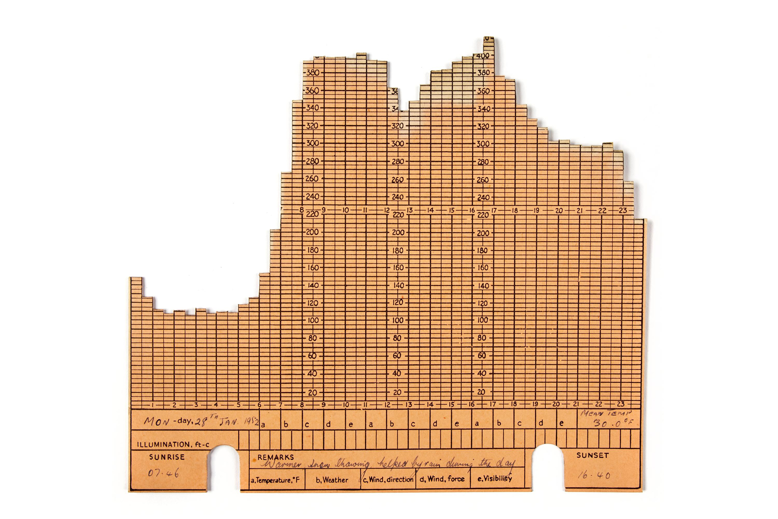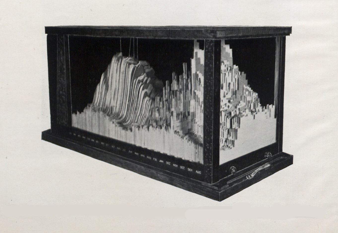 Showing electricity demand by the hour, day, month and year, this 3D chart offers a rich visualisation of energy data in the UK from the years 1951–54. Acquired by the Museum of Science & Industry, Manchester, the object is significant as a tangible record of past practice, both of the electricity supply industry and its consumers. In this paper, we offer a close inspection of the object, and following its clues, we generate ideas about the chart’s use and users. In addition to commenting on the rhythmic patterning of daily and seasonal loads, we reflect on the role of the object at the time of its construction, in terms of forecasting, price-setting and load-shifting, and lobbying and demonstration. The object literally materialises electricity demand, providing a distinctive 3D representation, and in so doing prompting questions about how demand changes over time, and in time, and how our practices of everyday life constitute this demand. We conclude by offering a new interpretation of the object as a tool, as well as historical data.