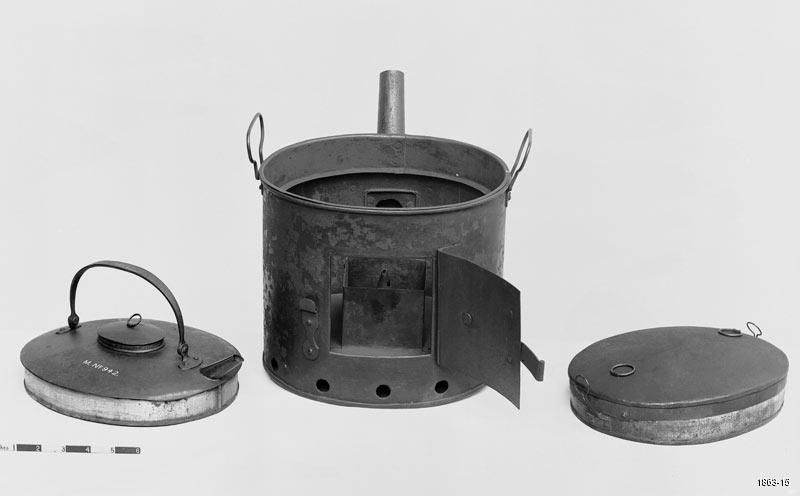 It is difficult to differentiate in the workshop between philosophy and craft. As Watt struggled to establish the nature of heat, and worked on aspects of chemistry, so here we have furnace crucibles with their last contents solidified inside them, chemical glasswares, protective aprons and eye-glasses, experimental tinplate vessels, and a stove which, as well as containing the fire for those experiments, has a Dutch stove on top for cooking food.