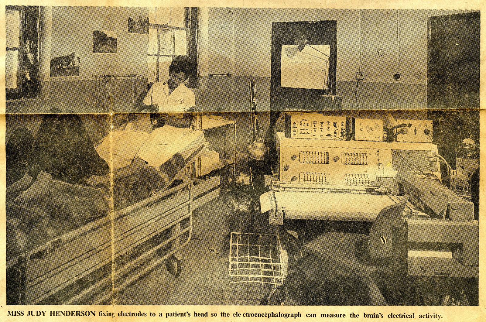 A striking feature of these and similar press shots taken in the BNI’s laboratories during this period is the flexibility with which they were deployed across different newspaper accounts. Rather than depicting specific research practices related to the piece at hand, newspapers would often utilise the same image of a female subject to accompany diverse stories ranging from the EEG testing of juvenile delinquents to new investigations into Parkinson’s disease. While the repeated use of these photographs was no doubt partially the result of constraints placed upon editorial decision-making by tight deadlines and limited resources, the end result was that the image of the passive, restrained ‘Guinea Pig Girl’ – as one 1973 article in the Western Daily Press described such volunteers – became common visual shorthand for neuroscientific power and knowledge.[8]