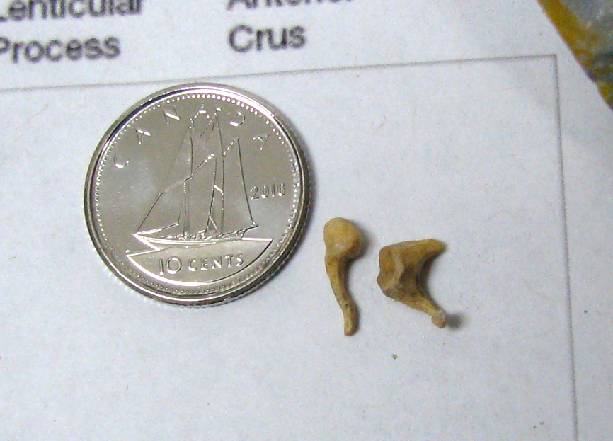 To achieve this compromise, we reached out to the University of Ottawa Health Sciences Library for help. We hoped that their experienced technical staff might assist us with producing a biologically accurate facsimile of a human middle ear that would be suitable for our reconstruction. After several consultations, they suggested the best approach would be to digitally ‘excise’ the portion of the ear we required from a 3D scan of a real human skull, which could then be printed using a 3D printer. We felt this approach was ideal, and so library technician Isabelle Castonguay set to work producing a plastic 3D print from a 3D scan found in the US National Institute of Health’s open-source 3D Print Exchange (see Figures 8 and 9).[20]