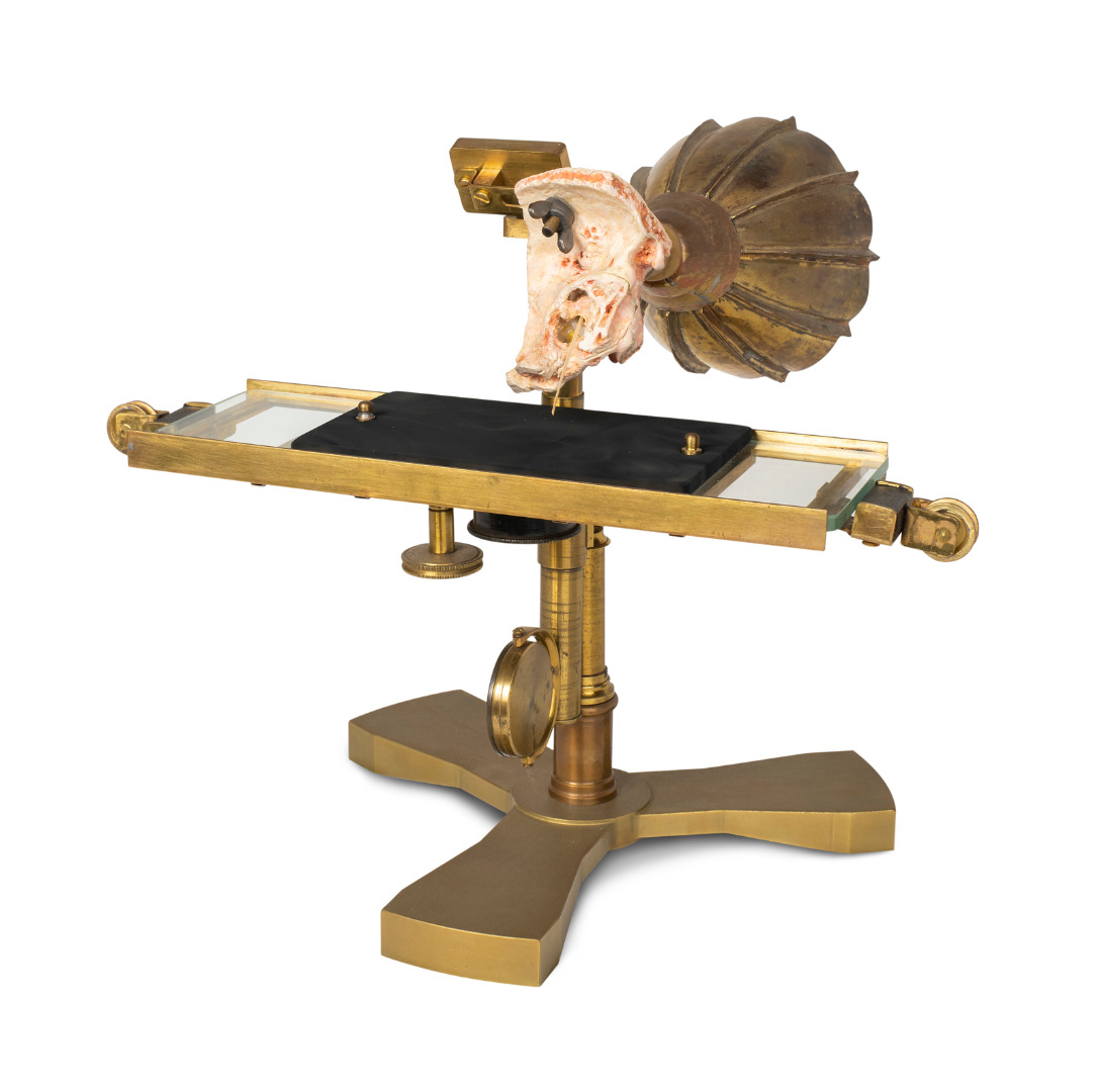 For all the detail present in these reports, one of the first surprises we encountered in attempting to fabricate the ear phonautograph’s main structure was how little information was provided on its material construction. Even in Blake’s reports – which devoted many pages to describing minute details, such as how the ear specimen should be excised and prepared to achieve the best possible phonautographic outcome – no information was provided as to how to actually replicate the main structure upon which this and the other components were affixed. This meant that educated guesswork was necessary to determine exactly what materials to use in our structure, how each element should be fabricated and assembled, and how each component should then be arranged in order to recreate the instrument’s original functionality.
